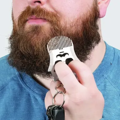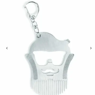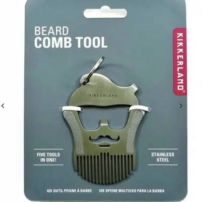 Beard Comb ToolKikkerland Beard Comb Tool$18.95 Add to Bag On a keyring: beard comb, nail file, nail cleaner, flat head screwdriver, bottle opener. Colour: Silver Material: Stainless steel Care instructions: Wipe Clean With A Damp Cloth Dimensions Approx. 6 x 10 x 1cm Includes 1 x Beard comb tool Durable and long lasting design Men’s AccessoriesMen’s Skin Care