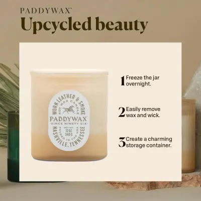 Glass CandlePaddywax Vista Collection Tan, Worn Leather & Smoke$39.95Add to Bag Whether it’s Western vibes or an alluring glow you’re looking for, our new vintage inspired Vista collection features tonal glass finishes that are sure to deliver both. Top Notes: Pink Peppercorn, Bergamot, Clove Bud, Saffron Middle Notes: Black Leather, Gingerlily, Cedar Leaf, Elemi Resin Base Notes: Dark Oak, Agarwood, Guaiac, Burlwood, Cade Size: 340 g / 12 oz. Vessel: Glass. Dimensions: 4.25 L x 2.5 W x 4.625 HCandles
