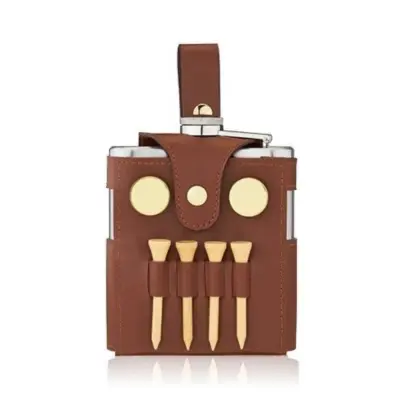 Golfer’s Flask and Accessory Set Golfer’s Flask and Accessory Set$54.95Add to Bag Be prepared for anything on the green or at the clubhouse with this stainless steel and vegan leather Golfer’s Flask. The carrying case features more golf tools and accessories than you can shake a putter at. four wooden golf tees two ball markers a divot tool plus a carrying strap for supreme portability 6 oz flask capacity gives you just enough juice for a day on the course 178ml flask From early morning tee time to afternoon sessions, this Golfer’s Flask with Accessory Set has everything the active golfer needs to stay entertained for 18 holes.DrinkSporting